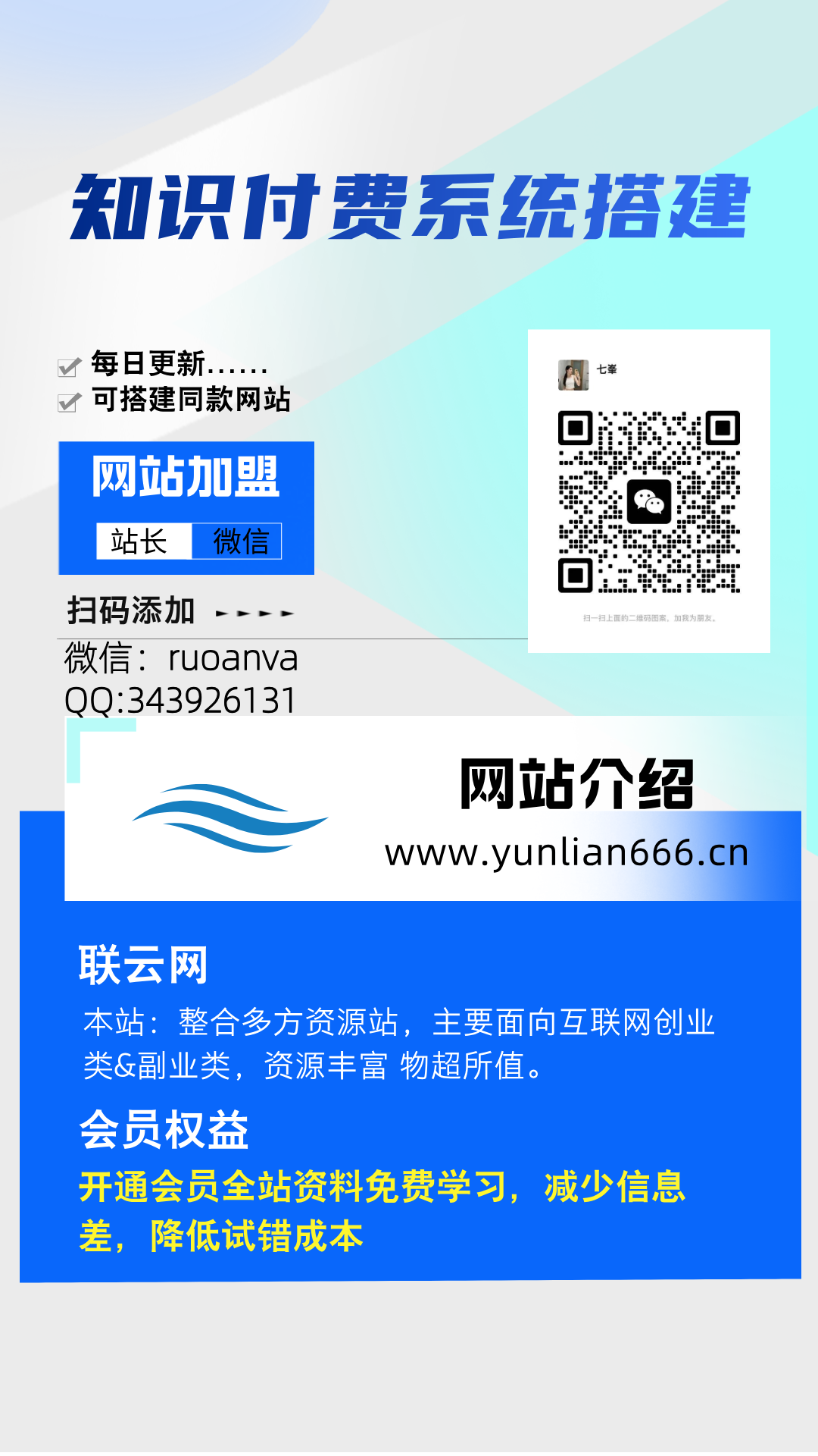 加盟云联网创,加盟搭建同款知识付费资源网站,实现长期稳定被动收入~